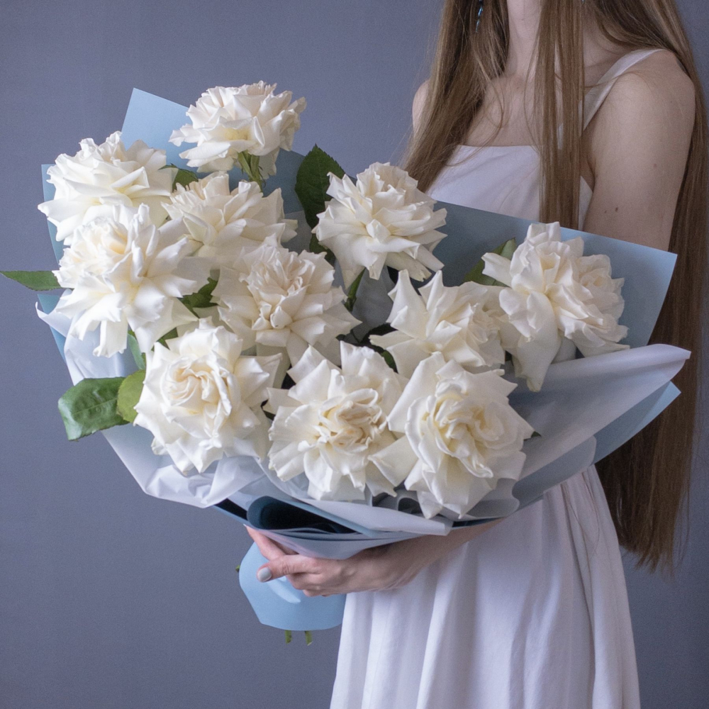 Букет французских роз Мондиаль отличаются фисташковым цветом, хорошей стойкостью и ароматом